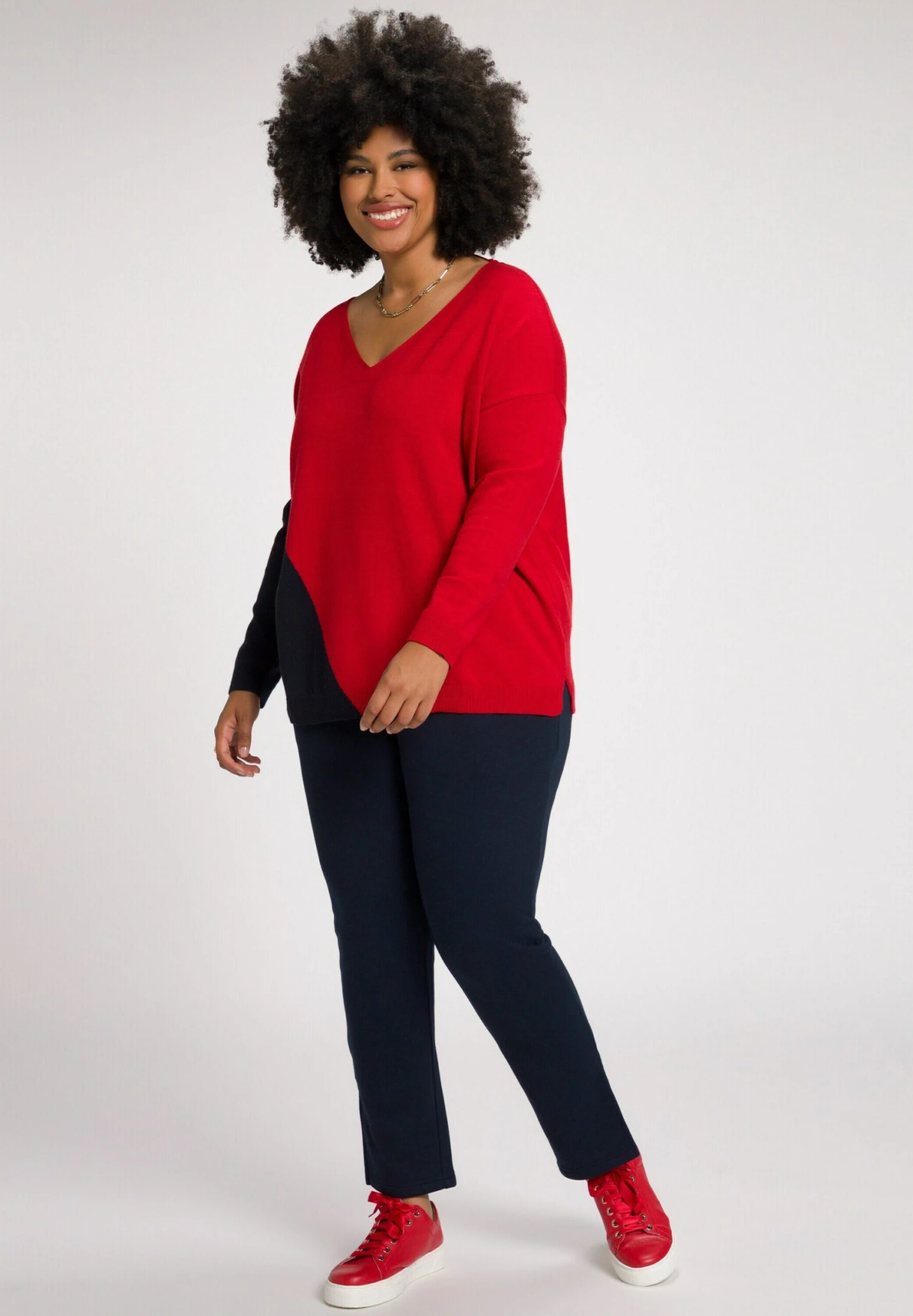 Ulla Popken COL V MANCHES LONGUES – Sweter – Bleu Marine