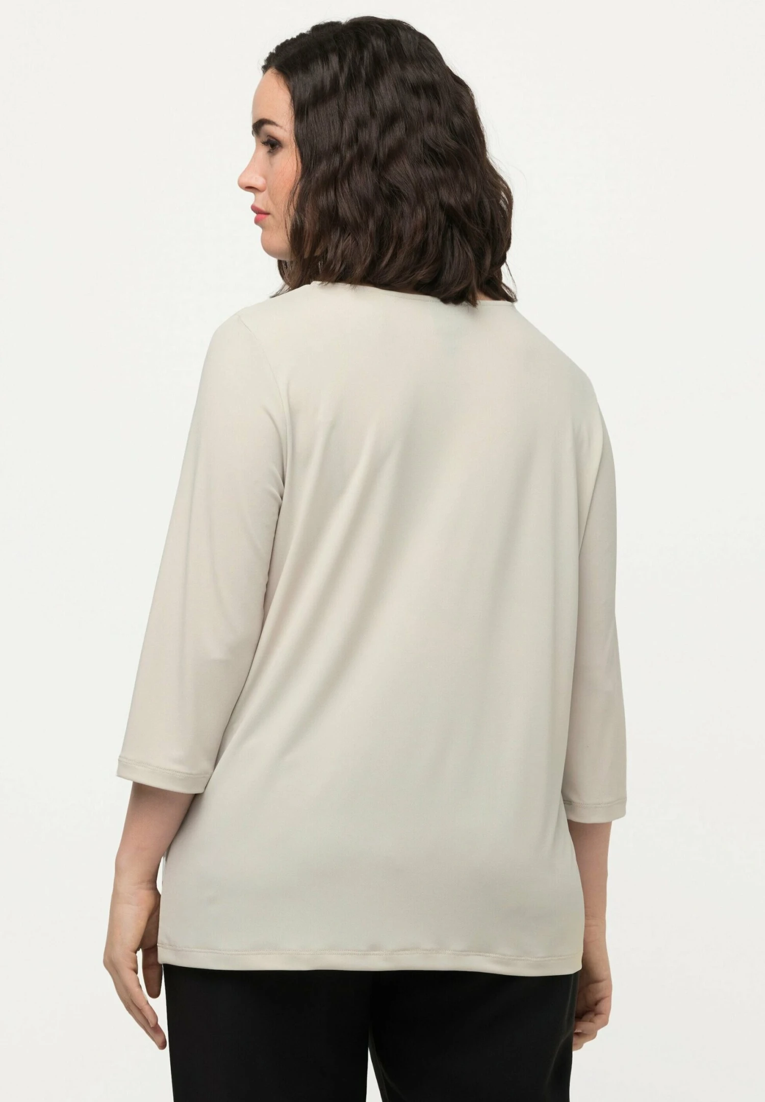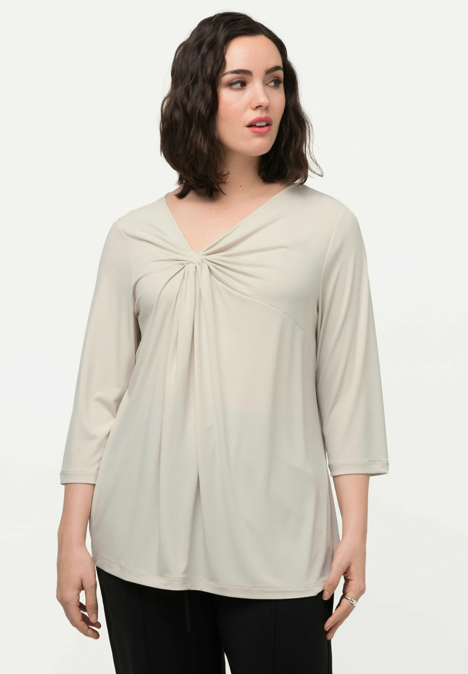 Ulla Popken KNOT FRONT 3/4 SLEEVE V-NECK – Bluzka Z Długim Rękawem – Gray/beige