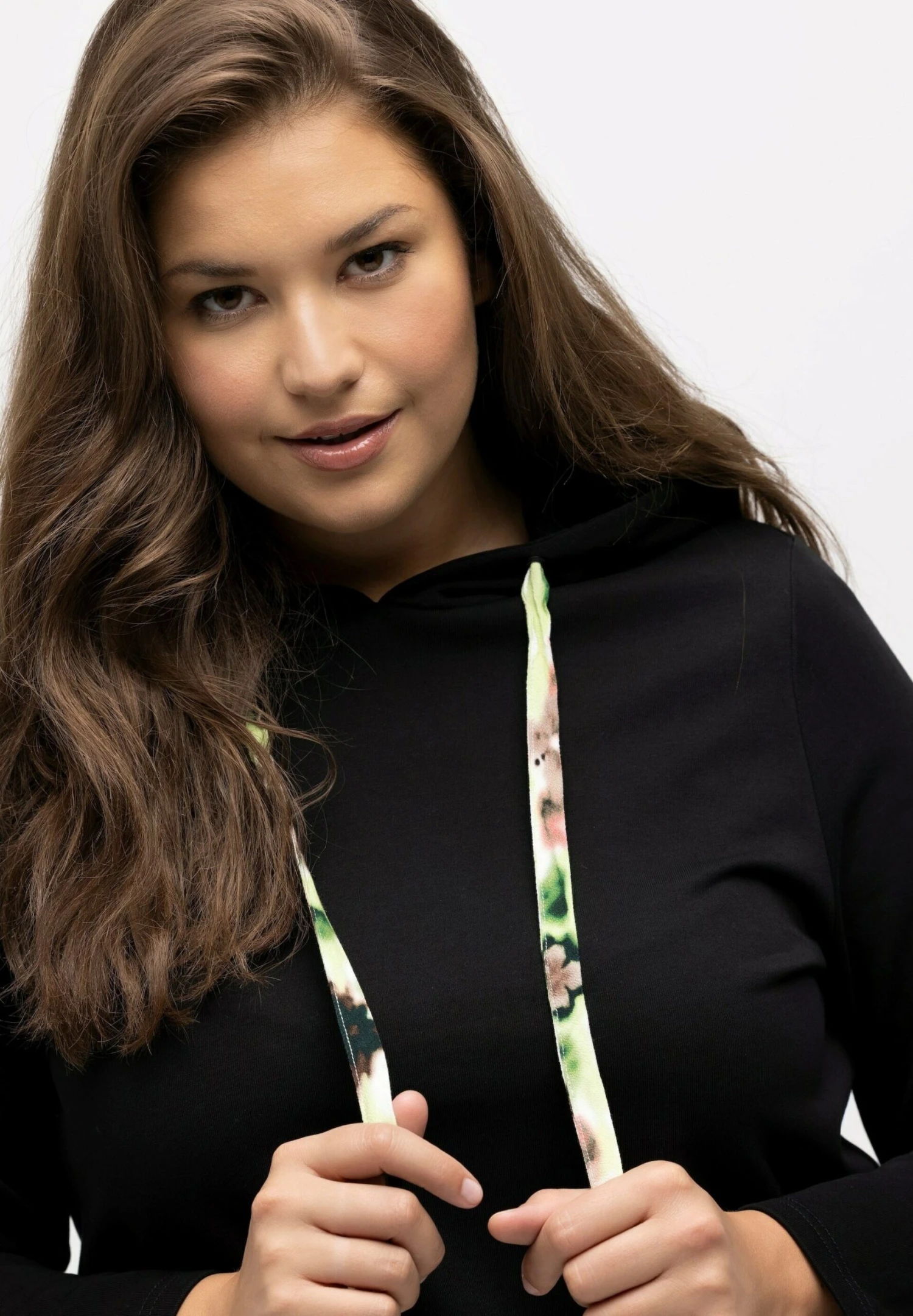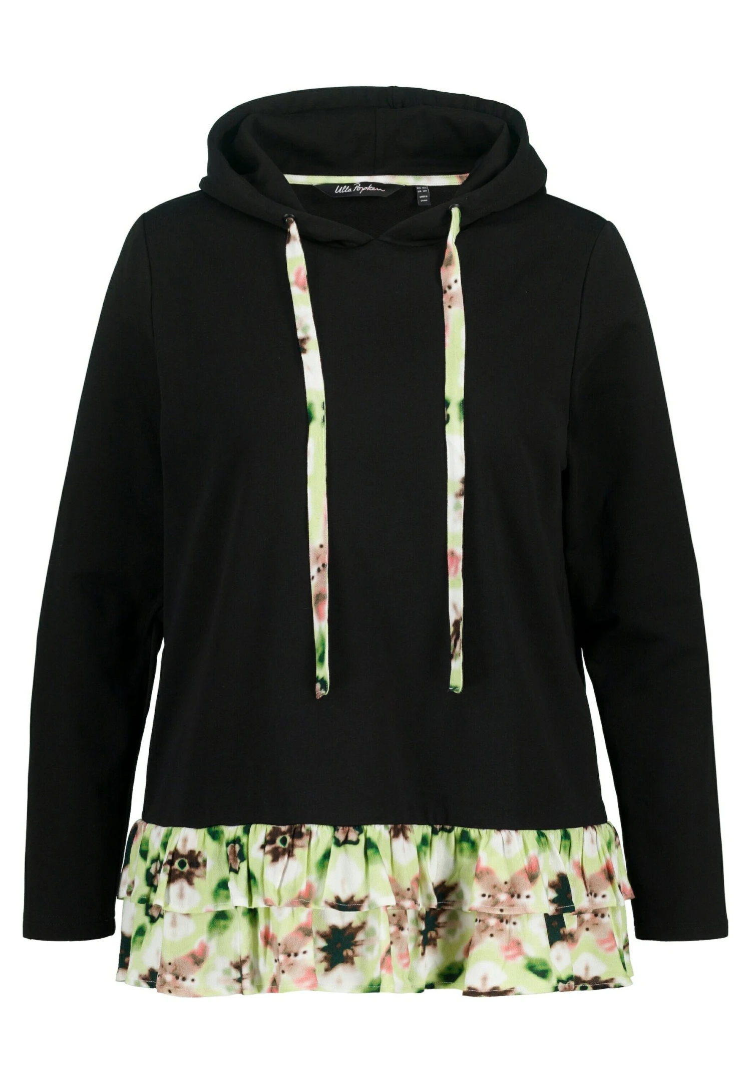 Ulla Popken RUFFLE HEM A LINE FIT – Bluza Z Kapturem – Black