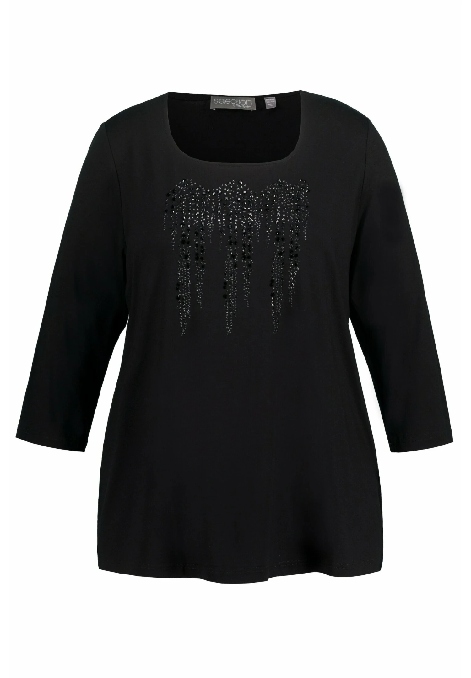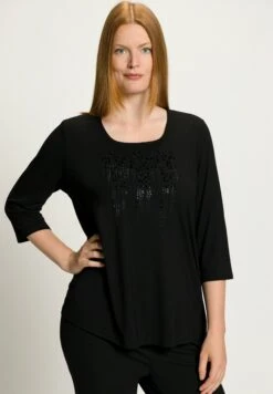 Ulla Popken SIERSTEENTJES, CLASSIC, CARRÉHALS, 3/4-MOUWEN – Bluzka Z Długim Rękawem – Zwart