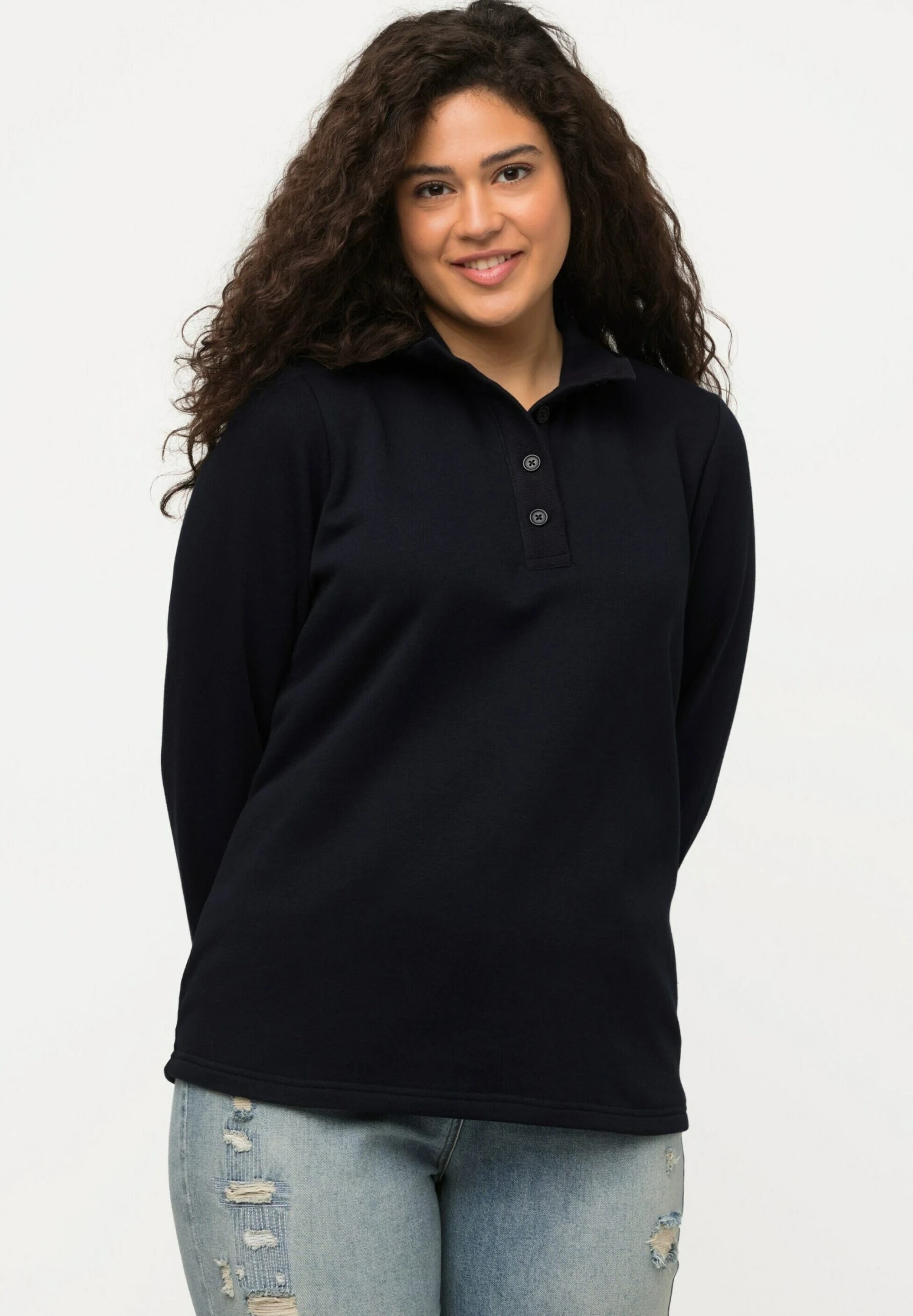 Ulla Popken STEHKRAGEN KNÖPFE LANGARM – Bluza – Marine