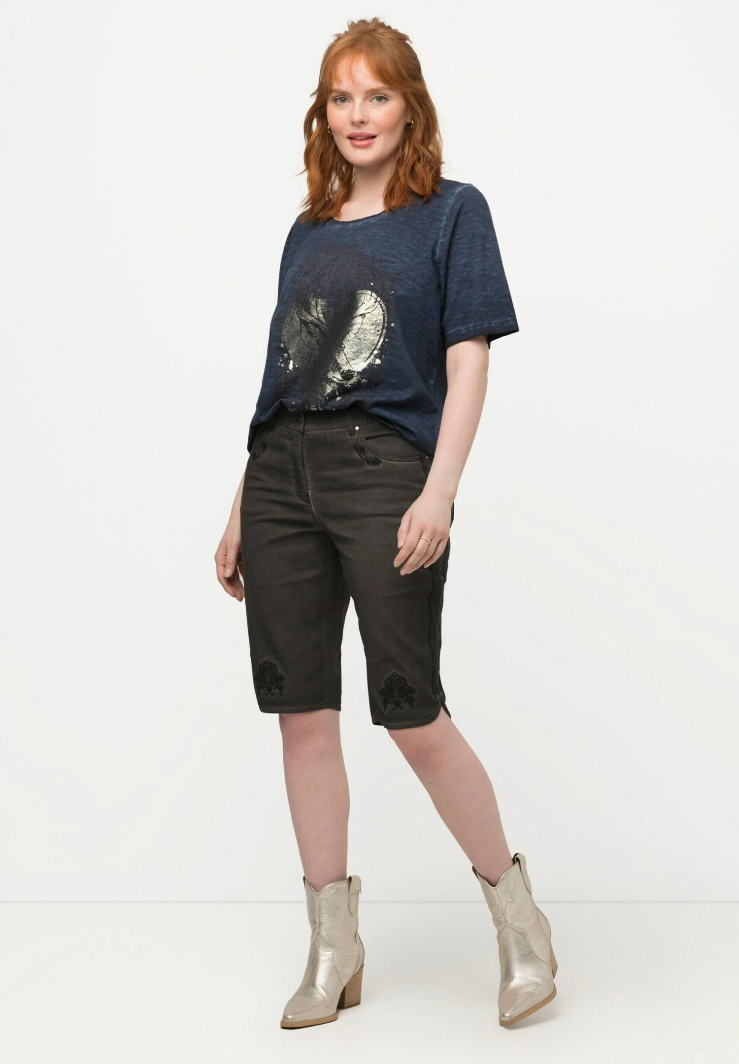 Ulla Popken TRACHTEN-BERMUDA MANDY USED-LOOK – Szorty Jeansowe – Schwarz